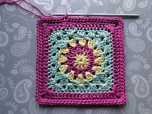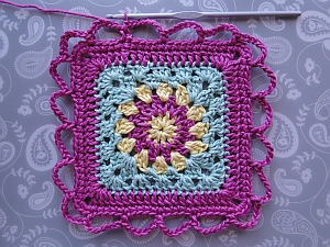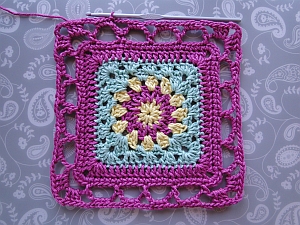 Tip: This square benefits from a press with a gentle iron and a bit of steam, just to settle that lacy edging! It really does make a difference. Check your yarn's ironing instructions!