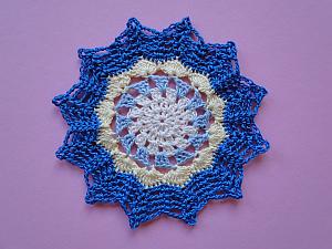 Work all 6 rounds of the Flowery Cosmic Coaster.