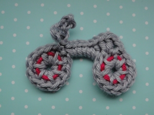 Frame and back wheel: ch 10. I worked these chain fairly tightly and neatly so as to keep their shape.