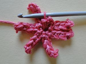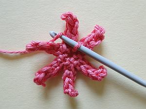To work the petals keep your working yarn at the back of the piece and your hook in front.